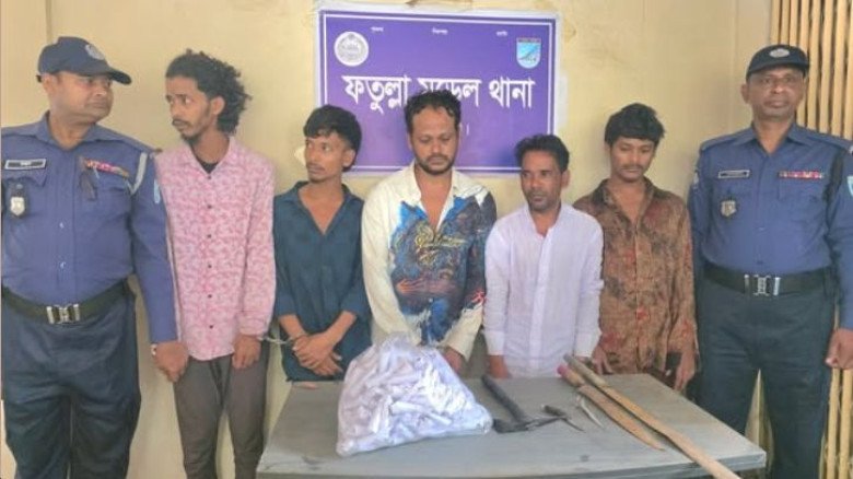 গ্রেফতারকৃতরা হলেন— মৃত হায়দার আলীর ছেলে রকি ওরফে পেটকাটা রকি (৩৪), মৃত সোনা মিয়ার ছেলে আনোয়ার (৪০), ইসমাইলের ছেলে নাছির (২৬), দেলোয়ারের ছেলে জিসান (২৪), এবং ইসমাইল মিয়ার ছেলে শান্ত (২৪)। তারা সবাই ফতুল্লা মডেল থানার ইসদাইর কাপুড়াপট্টি এলাকার বাসিন্দা।