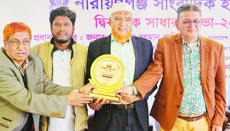 নারায়ণগঞ্জ সাংবাদিক ইউনিয়নের দ্বিবার্ষিক সাধারণ সভা-২০২৫ আজ শুক্রবার (২৭ ডিসেম্বর) উৎসবমুখর পরিবেশে অনুষ্ঠিত হয়েছে। সভায় প্রধান অতিথি হিসেবে উপস্থিত ছিলেন বাংলাদেশ ফেডারেল সাংবাদিক ইউনিয়ন (বিএফইউজে) সভাপতি ওবায়দুর রহমান শাহিন। অনুষ্ঠানে সভাপতিত্ব করেন নারায়ণগঞ্জ সাংবাদিক ইউনিয়নের সভাপতি আবু সাউদ মাসুদ।