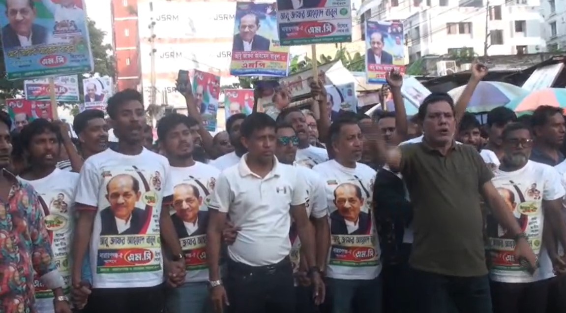 বুধবার (৮ অক্টোবর) শহরের মিশনপাড়া এলাকা থেকে মিছিল বের করেন বাবুলের অনুসারীরা।