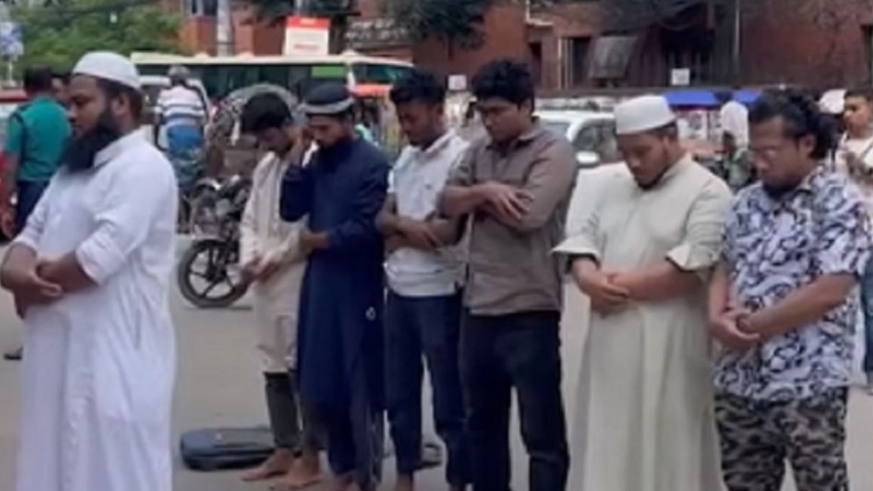 ফজলুর রহমানের বাসায় সামনে নামাজ পড়ল বিক্ষোভকারীরা