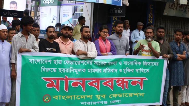 সাংবাদিক জিসানের মুক্তির দাবিতে জেলা যুব ফেডারেশনের মানববন্ধন